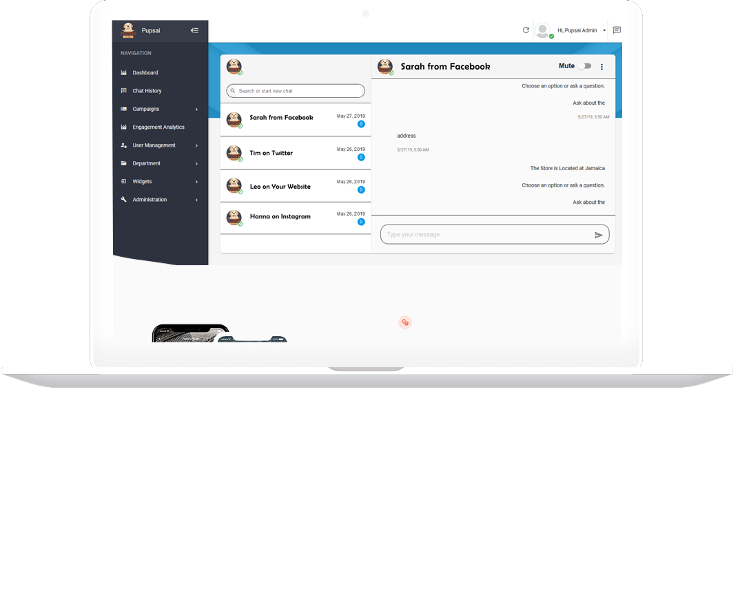 Pupsai sells on websites or through social media messaging. Faster responses when your customers need them, and a fast learner who can be supervised.